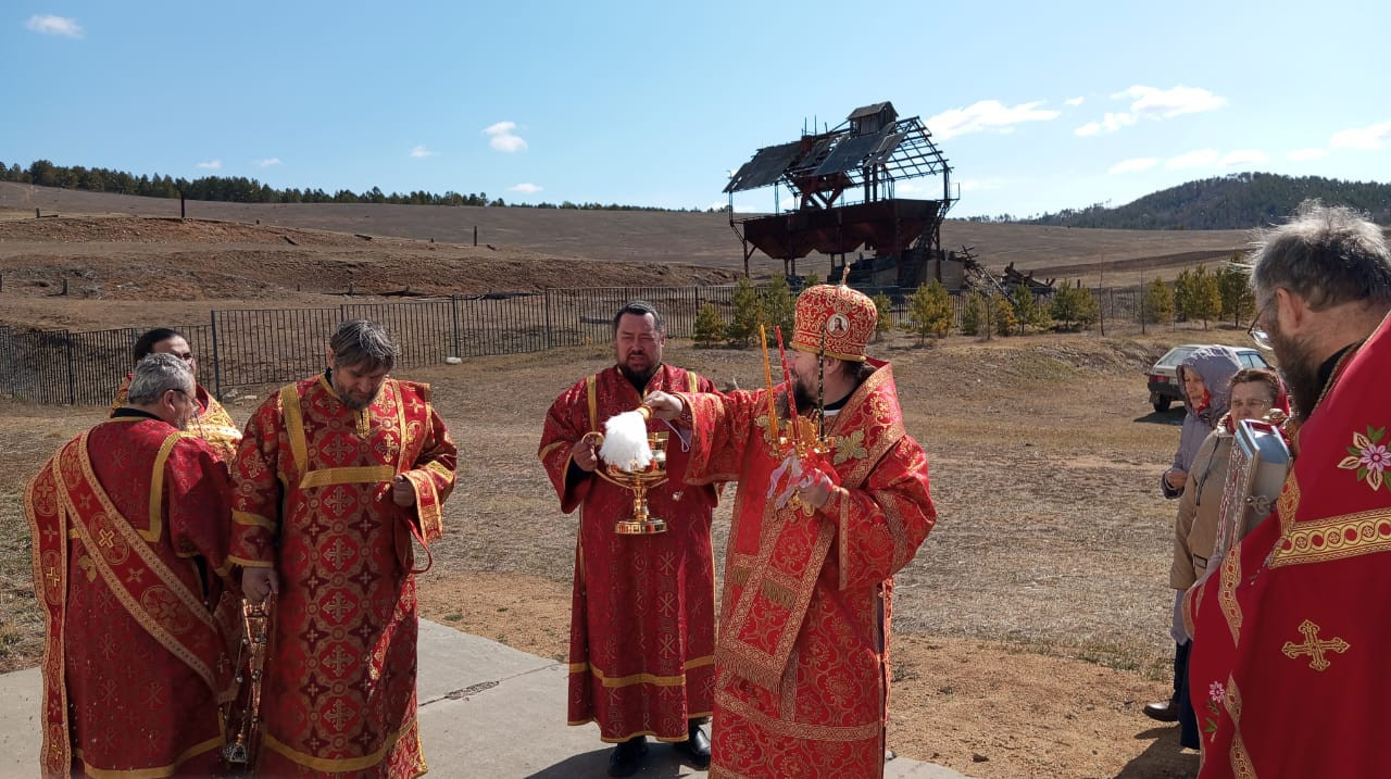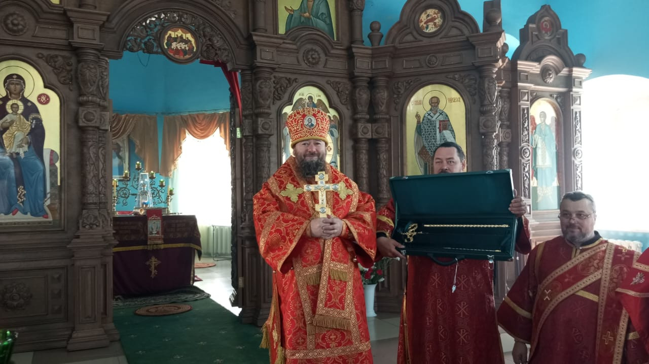 Его Преосвященству сослужили: благочинный Чернышевского церковного округа, настоятель Спасского храма в селе Курлыч, Чернышевского района протоиерей Андрей Кисов; ключарь кафедрального собора Воскресения Христова г. Нерчинска иерей Роман Пичуев.